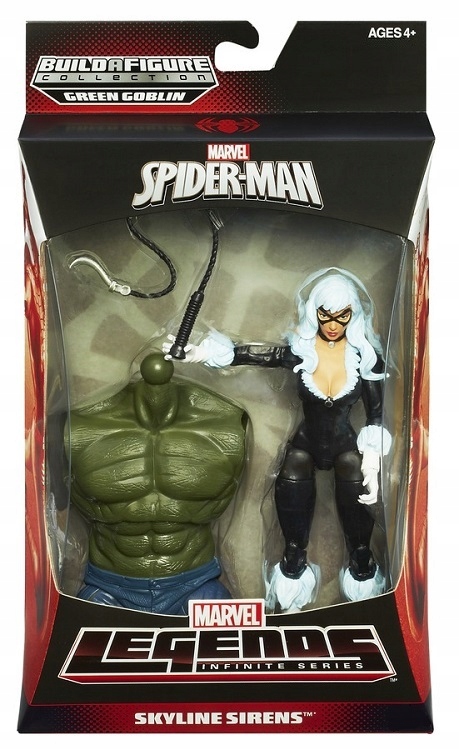 Figurka jest zapakowana w estetyczne, kolorowe pudełko z serii Marvel Legends, które doskonale eksponuje zawartość. Opakowanie ma efektowną grafikę z motywami Spider-Mana i linii Skyline Sirens, dzięki czemu świetnie nadaje się również na prezent. Karton jest solidny, sztywny i chroni figurkę podczas przechowywania lub wysyłki, a jednocześnie prezentuje się kolekcjonersko na półce.