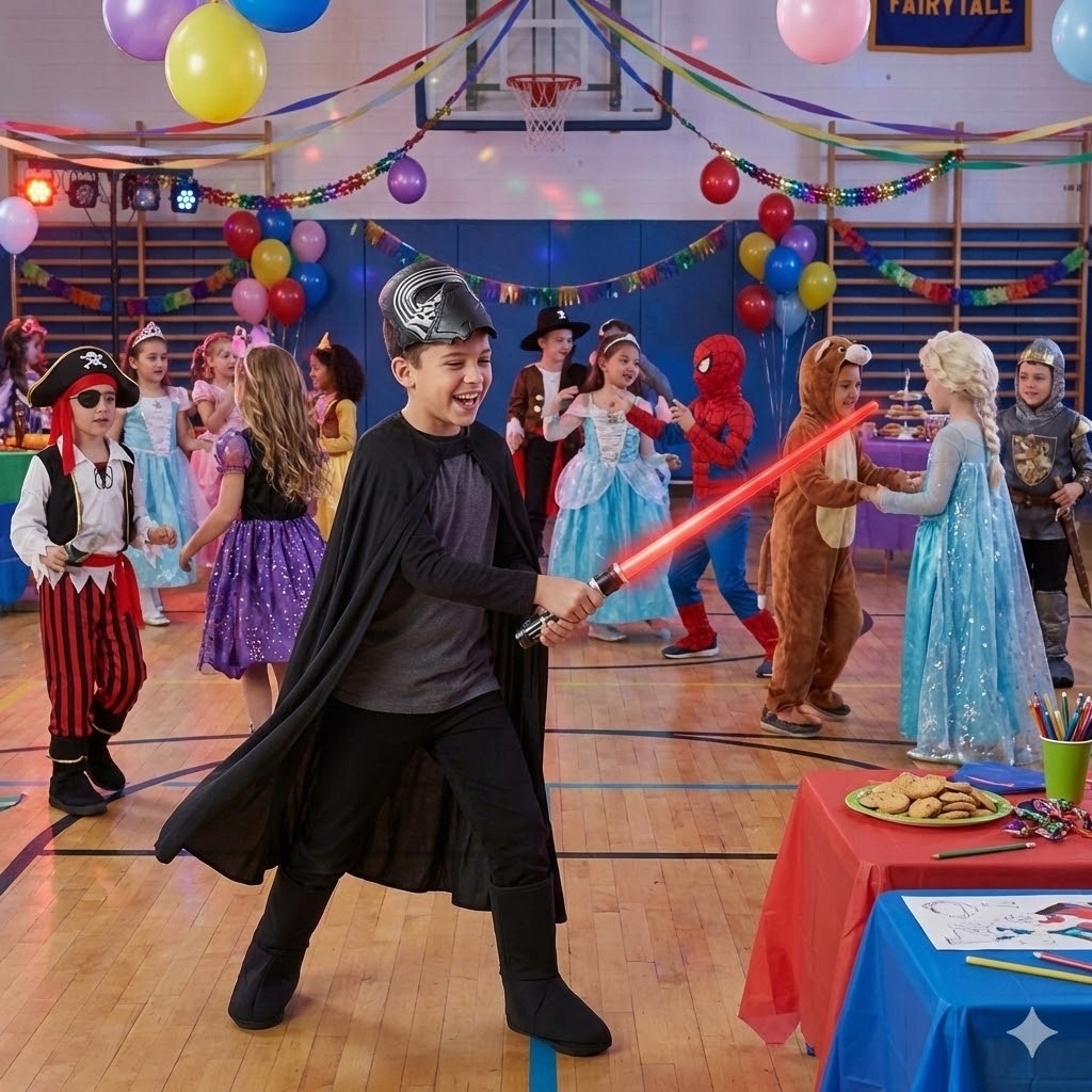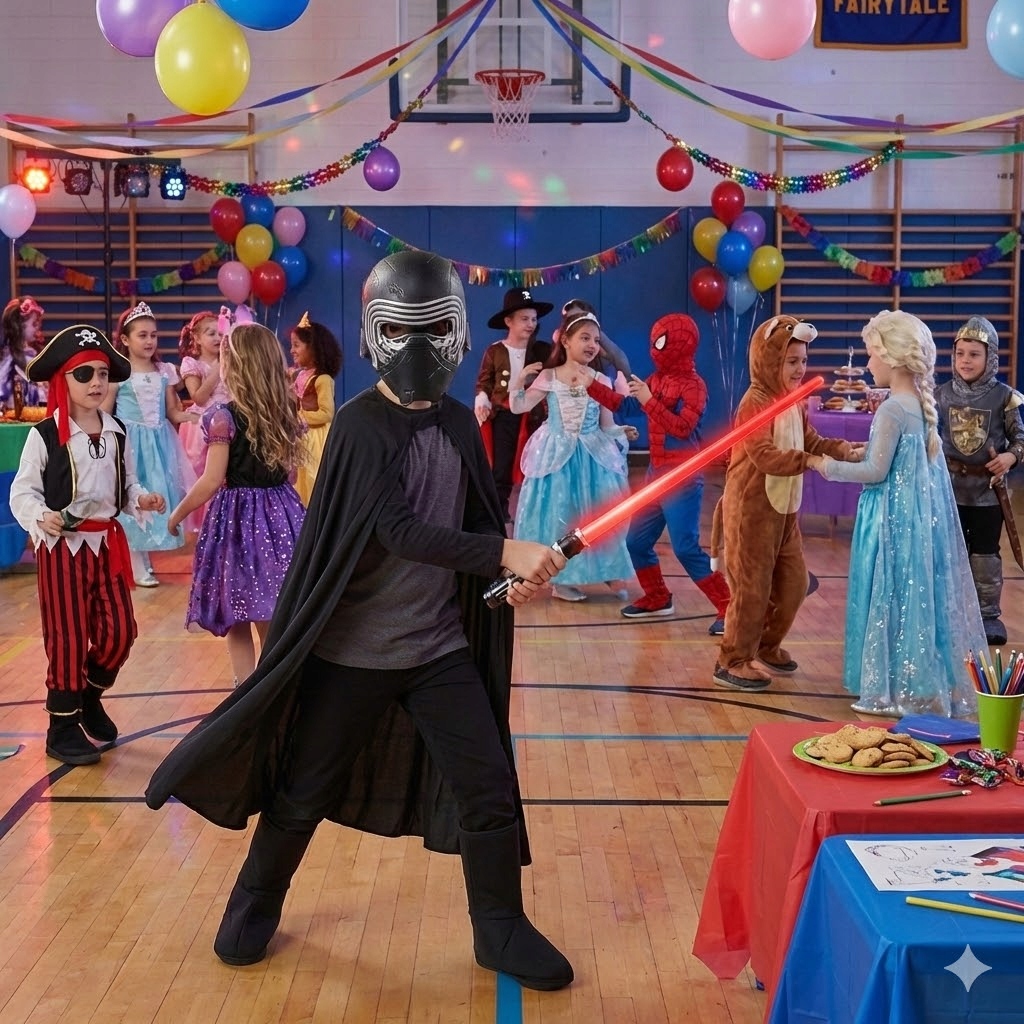Twój maluch szykuje się na bal karnawałowy i chce zrobić wejście smoka? Ten zestaw to strzał w dziesiątkę! Mroczna maska, powiewająca czarna peleryna i – co najważniejsze – świecący na czerwono miecz, sprawią, że na szkolnym parkiecie (jak widać na zdjęciu!) nikt nie przejdzie obok niego obojętnie. To gotowy przepis na tytuł króla (lub mrocznego lorda) balu!