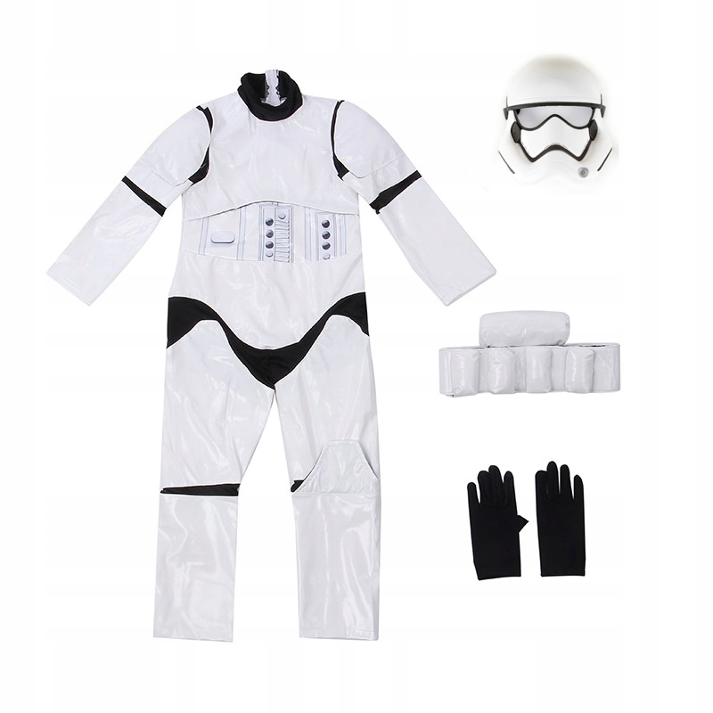 Ten kostium to coś więcej niż przebranie – to wiernie odwzorowana zbroja, gotowa na każdą misję! Został uszyty z gładkiego, lśniącego materiału, który doskonale imituje wygląd charakterystycznego, białego pancerza Szturmowca.