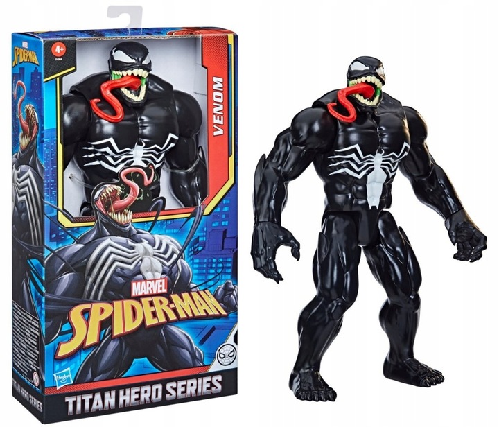 Ta 30-centymetrowa figurka Titan Hero DELUXE - Venom, inspirowana jest postacią z serii Spiderman. Muskularna rzeźba, charakterystyczne cechy, wijący się czerwony jęzor - wszystkie te cechy zostały zachowane, nadając groźny i odrażający wygląd.