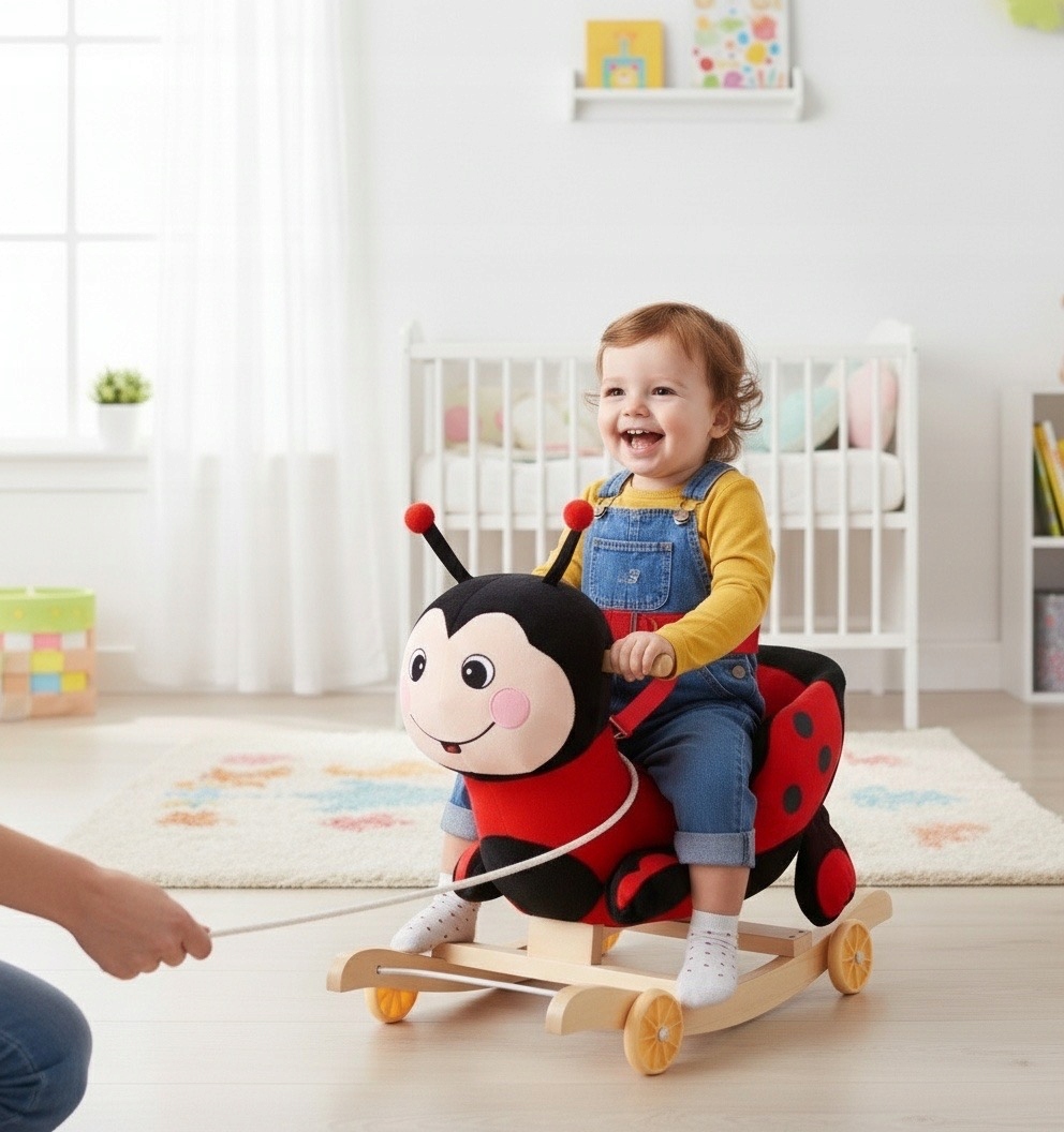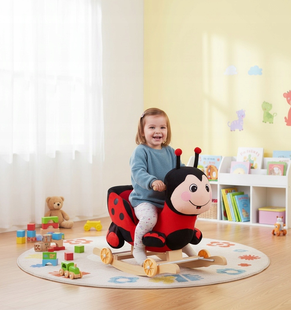 Biedronka może służyć jako tradycyjny bujaczek na płozach lub jako jeździk na kółkach.