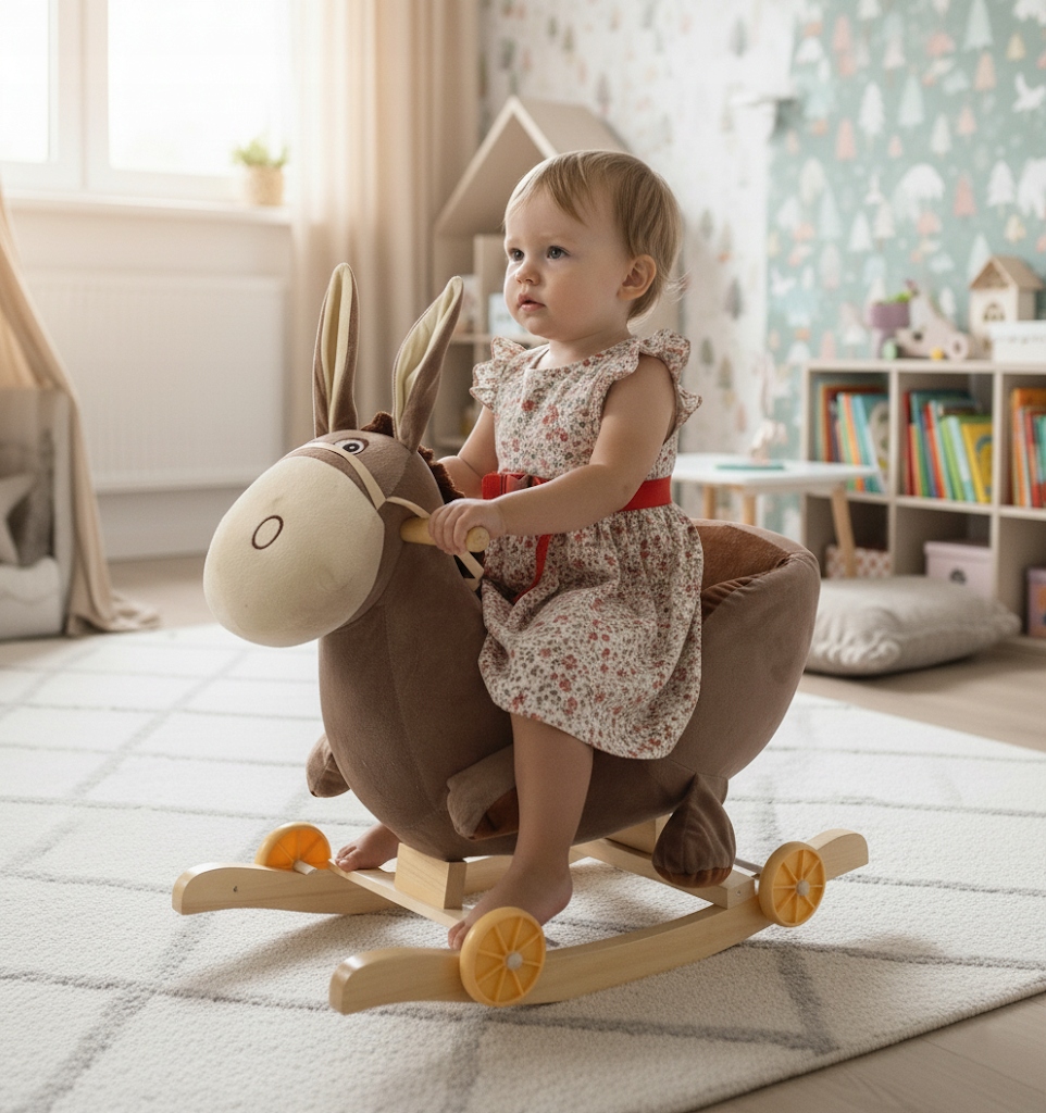 Pluszowy Bujaczek na biegunach Osiołek 2w1 – Bujak i Jeździk