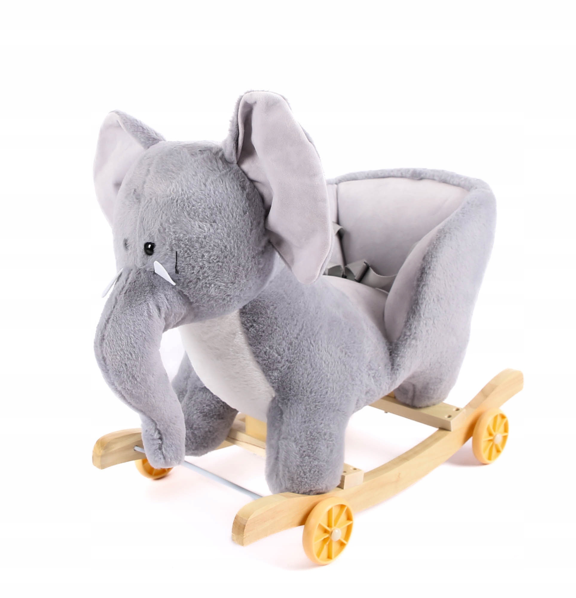 Pluszowy Bujaczek SŁONIK na biegunach 2w1 – Bujak Jeździk Płozy, Kółka