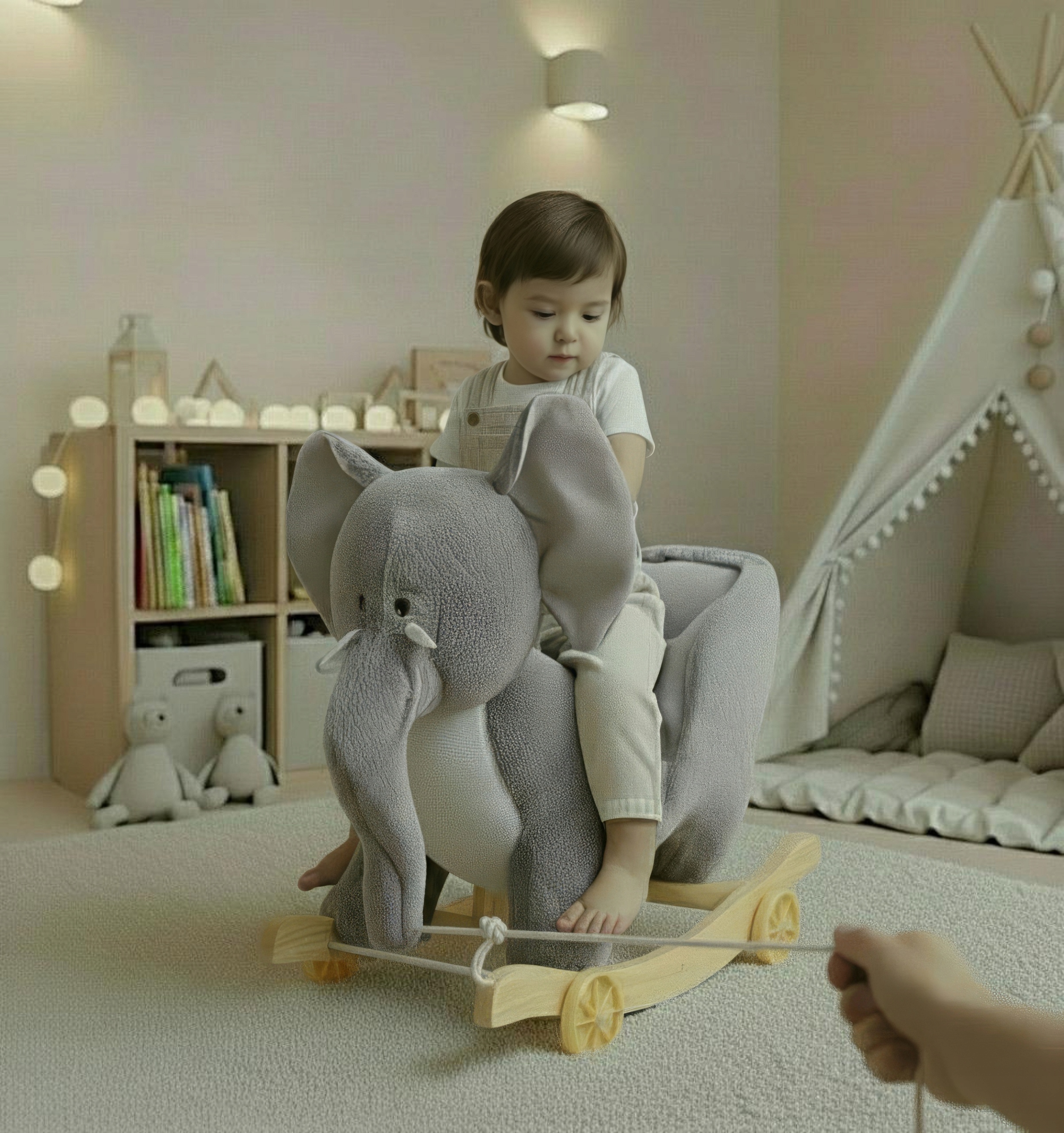 Pluszowy Bujaczek na biegunach SŁONIK 2w1 – Bujak i Jeździk