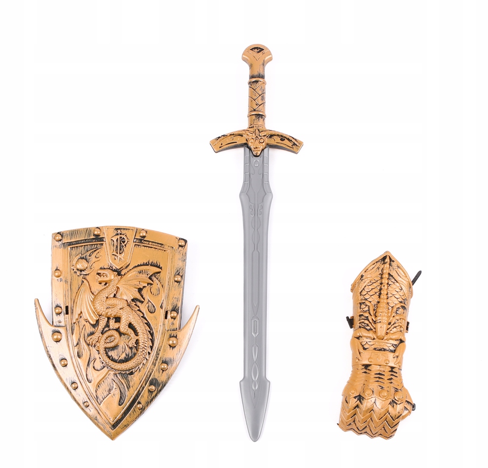 Zestaw zawiera komplet bezpiecznych akcesoriów, które dopełniają rycerski wygląd: