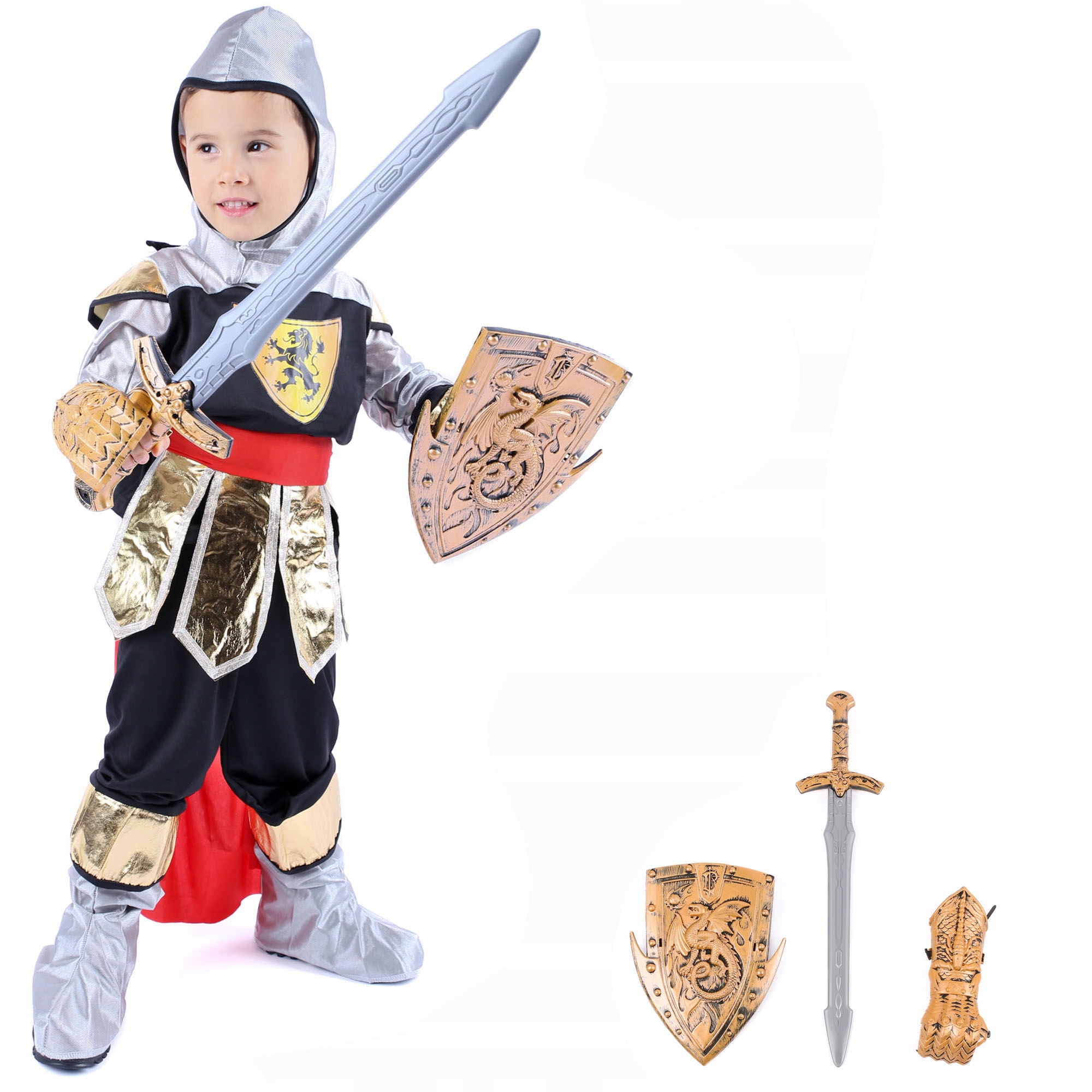 Zestaw to pełny, imponujący strój małego rycerza – gotowy do wielkich przygód!