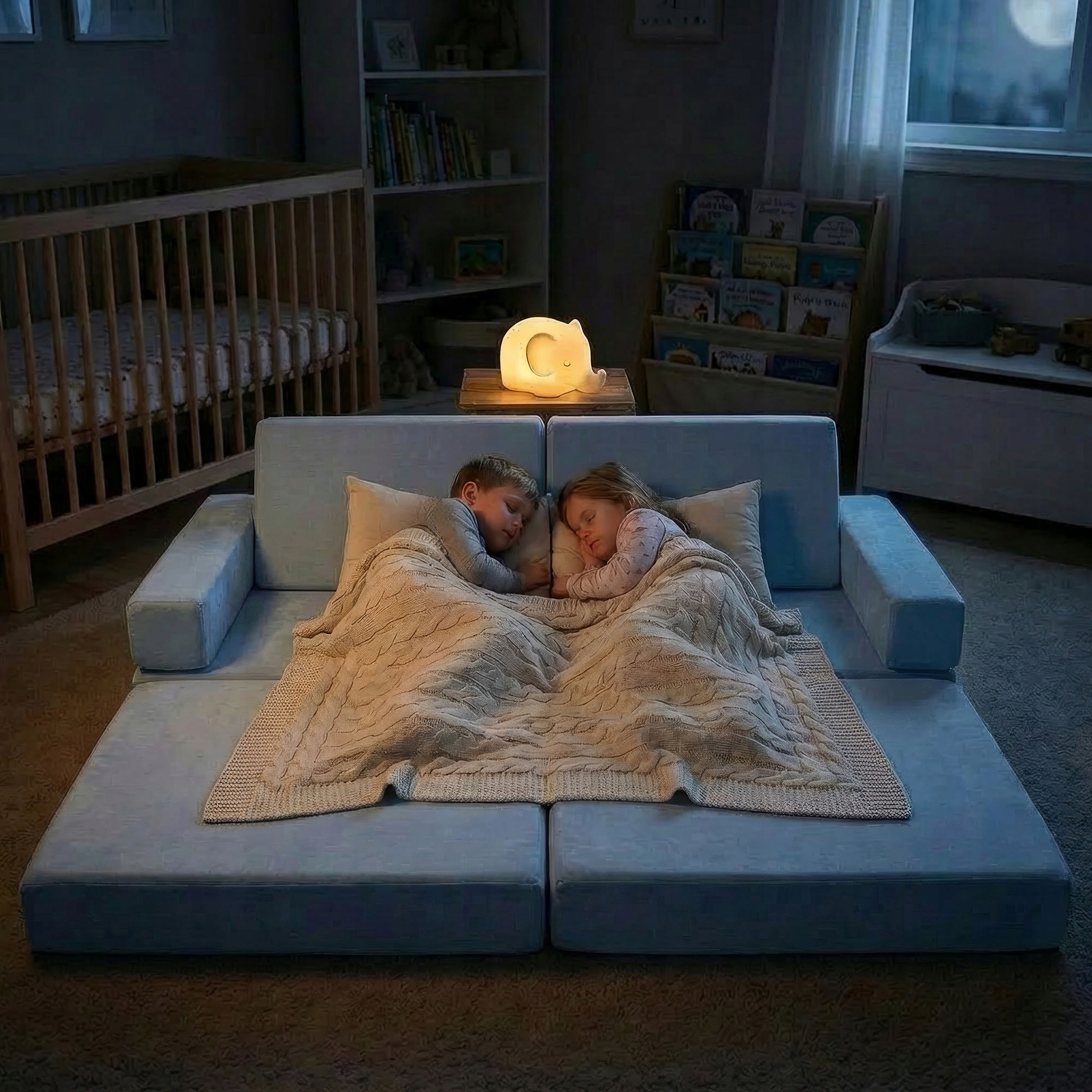 - Przytulny klimat: Nastrojowe oświetlenie i miękki kocyk sprawią, że każdy maluch poczuje się tu jak we własnym łóżku.
