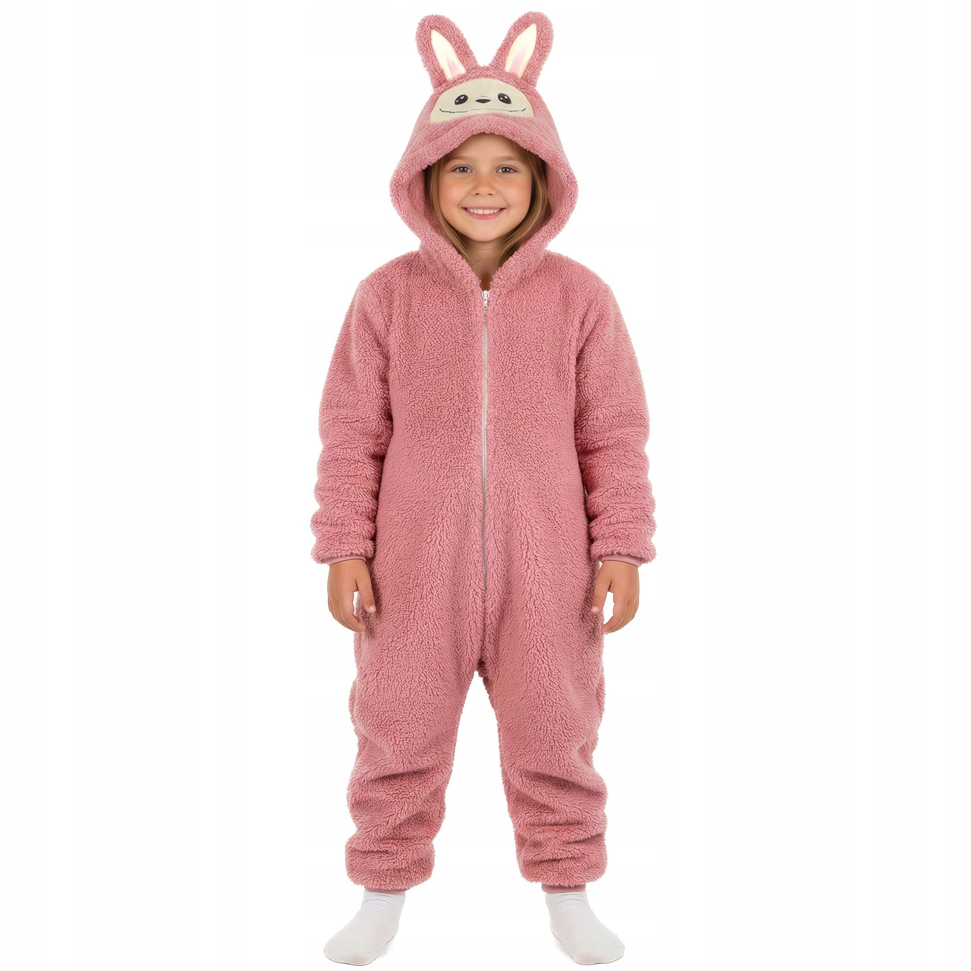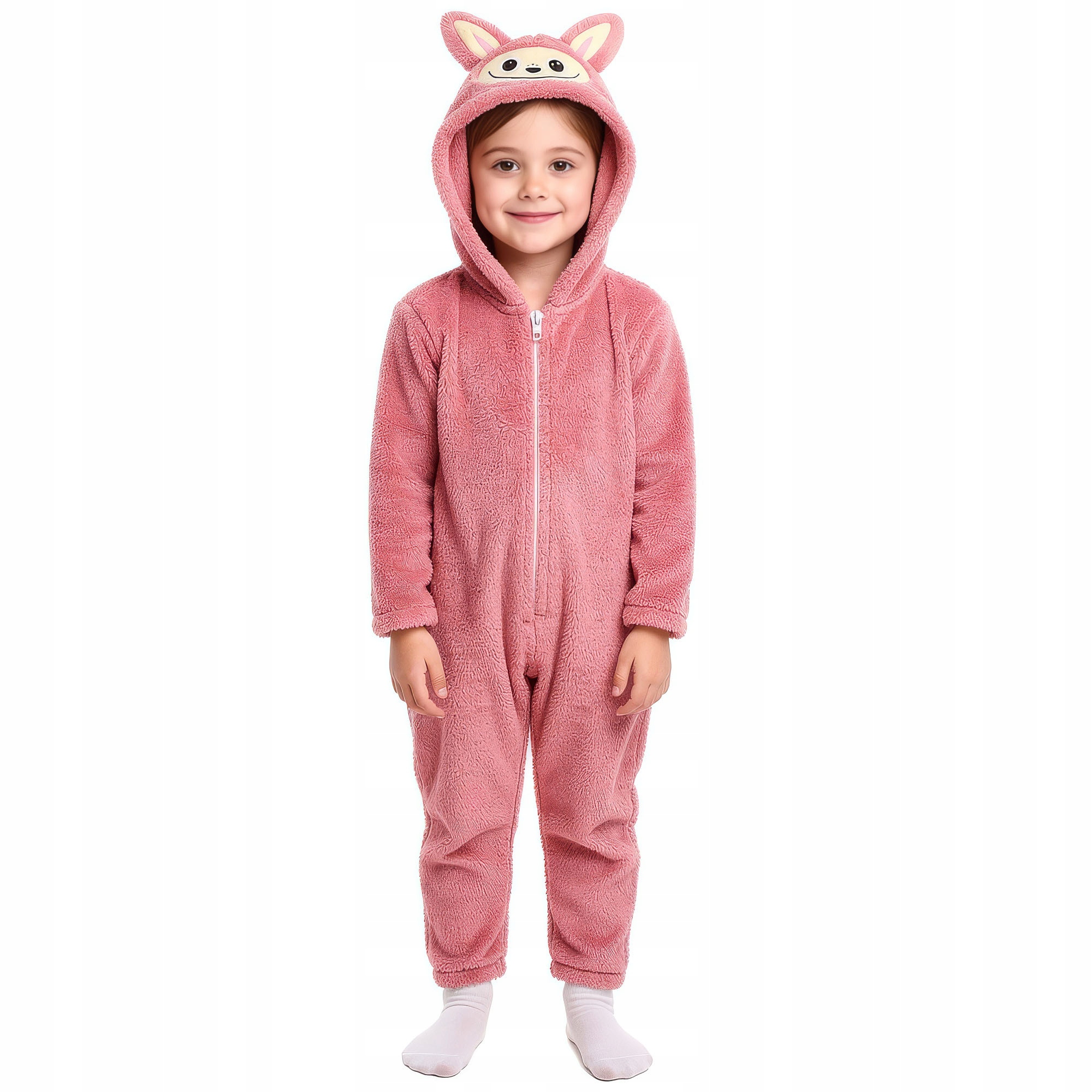 Strój LABUBU, kostium imitujący futerko, piżama LAFUFU z ogonkiem rozmiary: 110-140 PUDROWY RÓŻ
