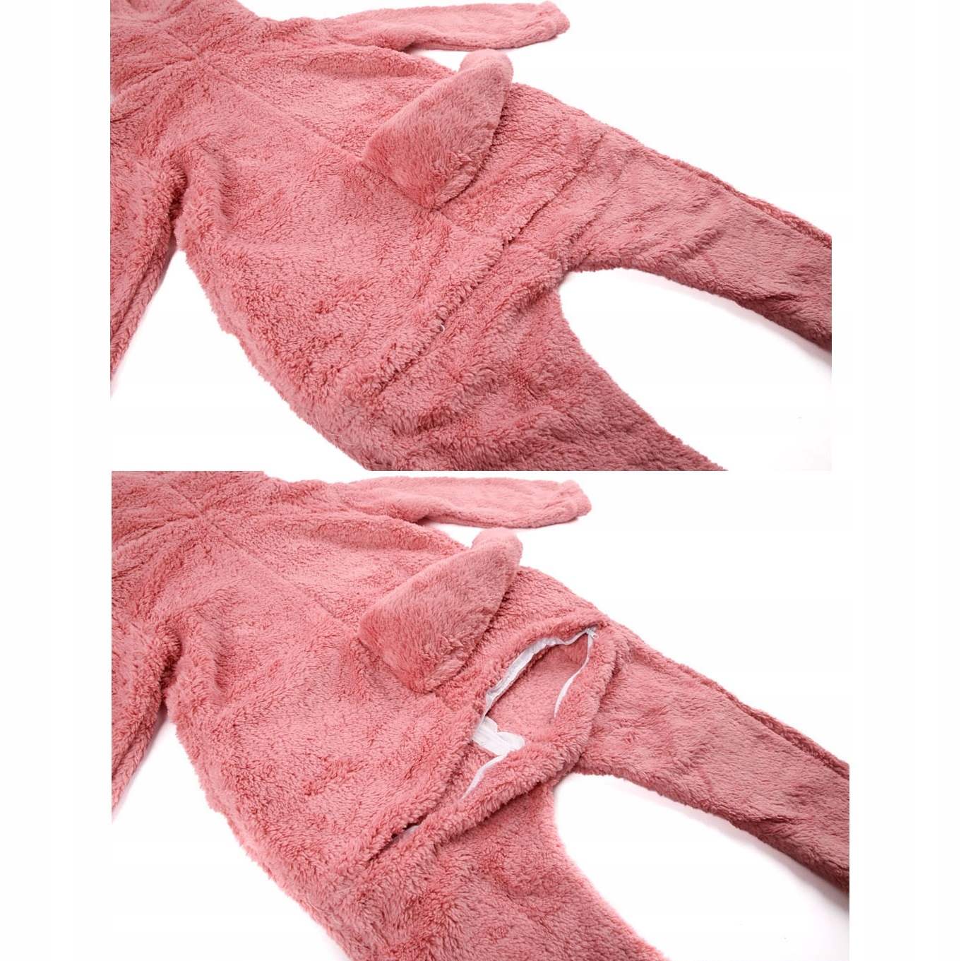 • Strój LABUBU, kostium imitujący futerko, piżama LAFUFU z ogonkiem rozmiary: 110-140 PUDROWY RÓŻ
