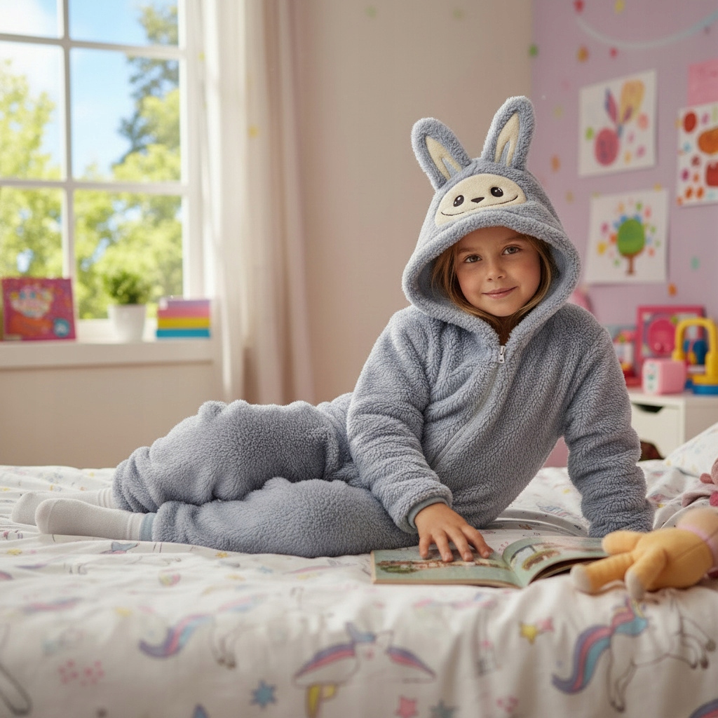 Swobodny krój nie krępuje ruchów, pozwala wygodnie usiąść, położyć się i bawić na podłodze, a przytulna forma daje poczucie ciepła i bezpieczeństwa. Dzieci bardzo szybko się do niego przywiązują – często nie chcą go zdejmować, traktując go jak swój ulubiony domowy strój, w którym czują się komfortowo i „po swojemu”.