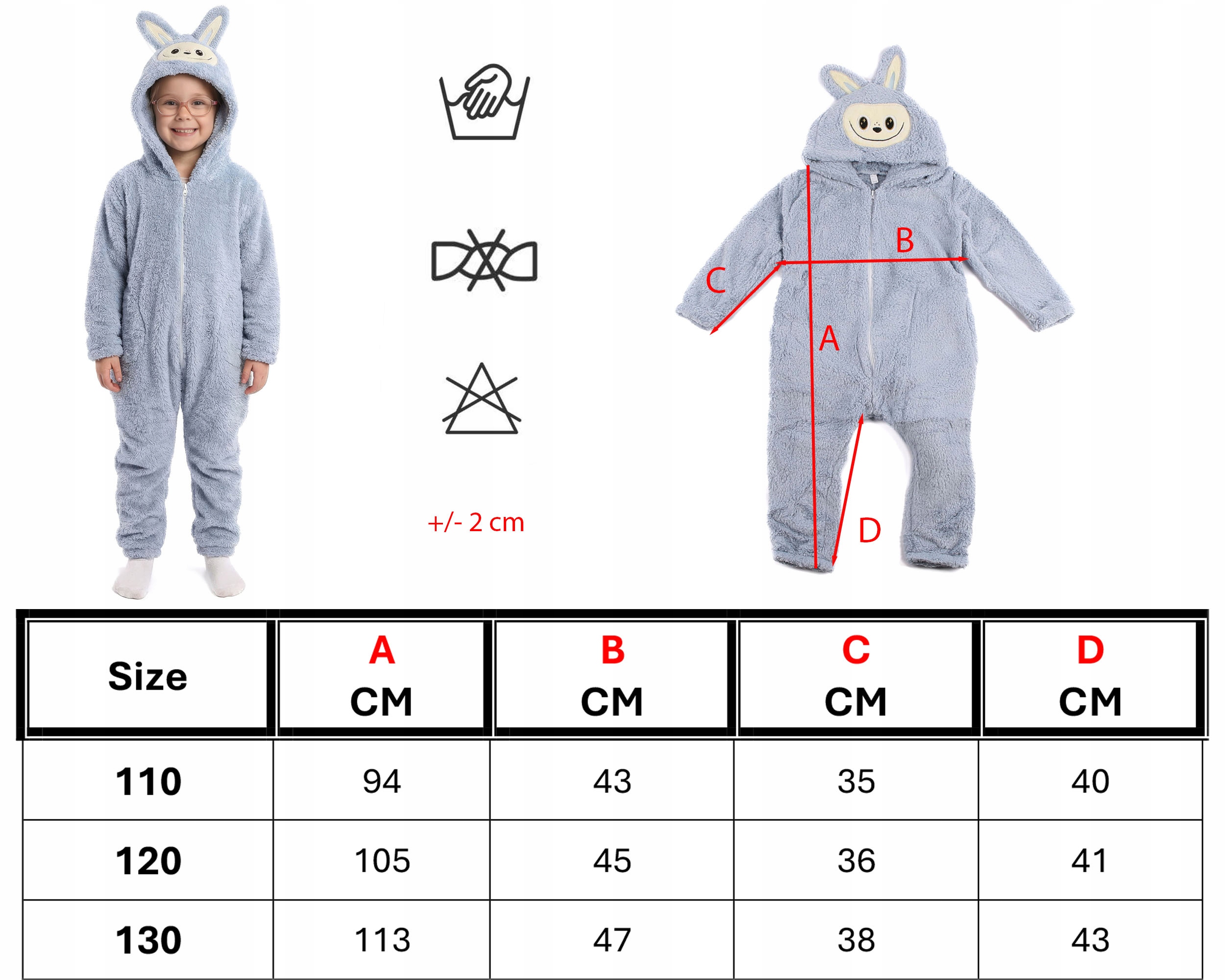 Ten kombinezon doskonale sprawdza się nie tylko jako strój do zabawy, ale także jako wygodna, ciepła piżama na chłodniejsze noce. Miękki, puszysty materiał przyjemnie otula ciało, zapewniając uczucie komfortu i bezpieczeństwa, które sprzyja spokojnemu zasypianiu.