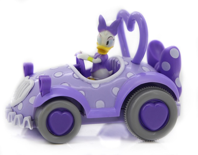 Wspaniały zabawka - samochód Daisy wraz z główną bohaterką. Pięknie ozdobiony wspaniałą kokardą oraz bajkowymi kropkami na karoserii.