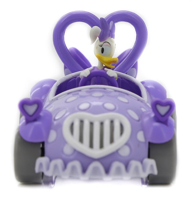 Wspaniały zabawka - samochód Daisy wraz z główną bohaterką. Pięknie ozdobiony wspaniałą kokardą oraz bajkowymi kropkami na karoserii.