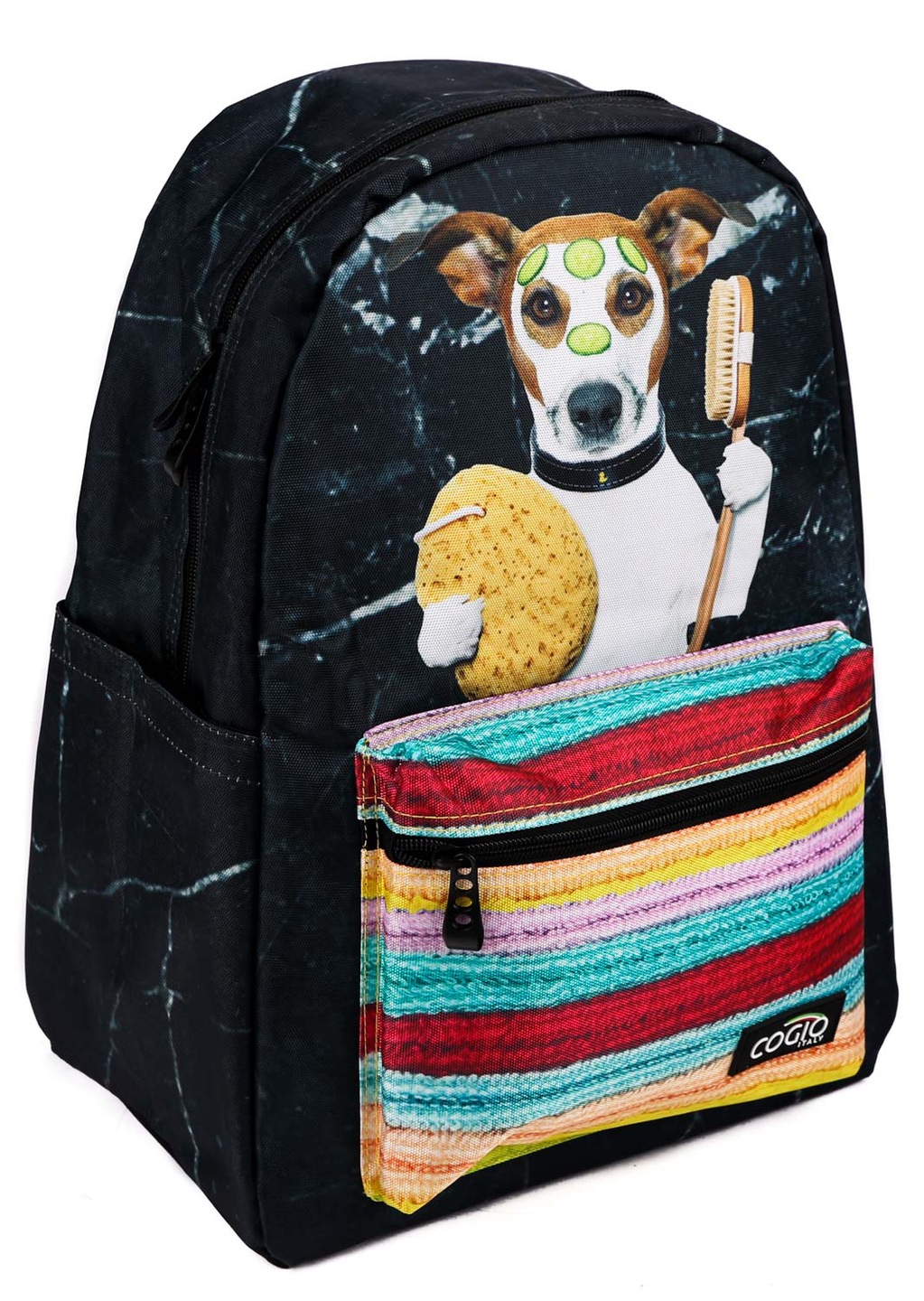 Wysokiej jakości plecak szkolny z kolorowym nadrukiem 3D najnowszej generacji. Wyprodukowany dla włoskiej firmy COGIO.
