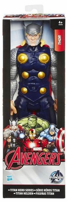 Oficjalna zabawka filmu Avengers oraz Thor. Wyprodukowana przez HASBRO na licencji MARVEL. Posiada ruchome ręce i nogi. W zestawie znajduje się broń bohatera - MŁOT. Z tyłu figurka posiada pelerynę.