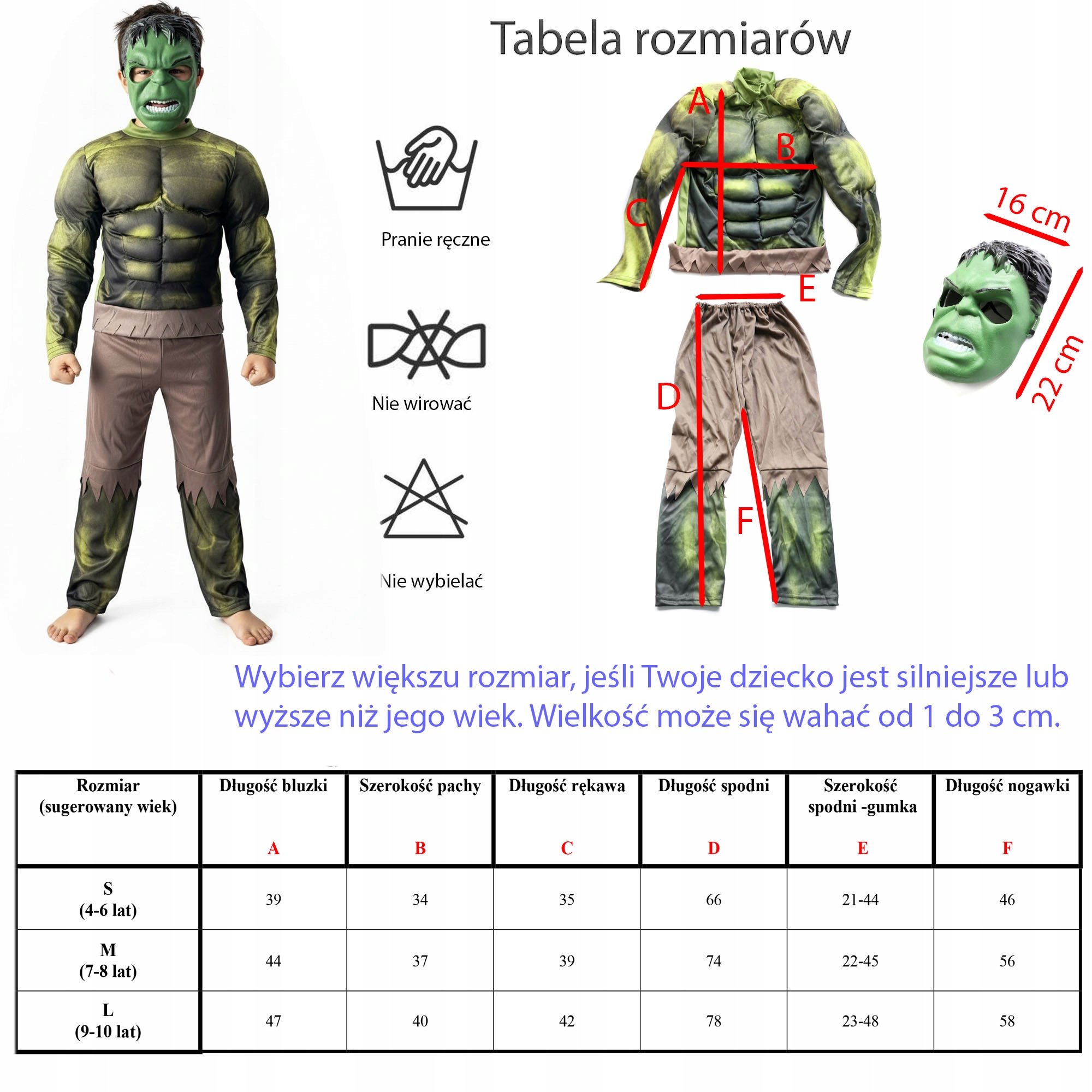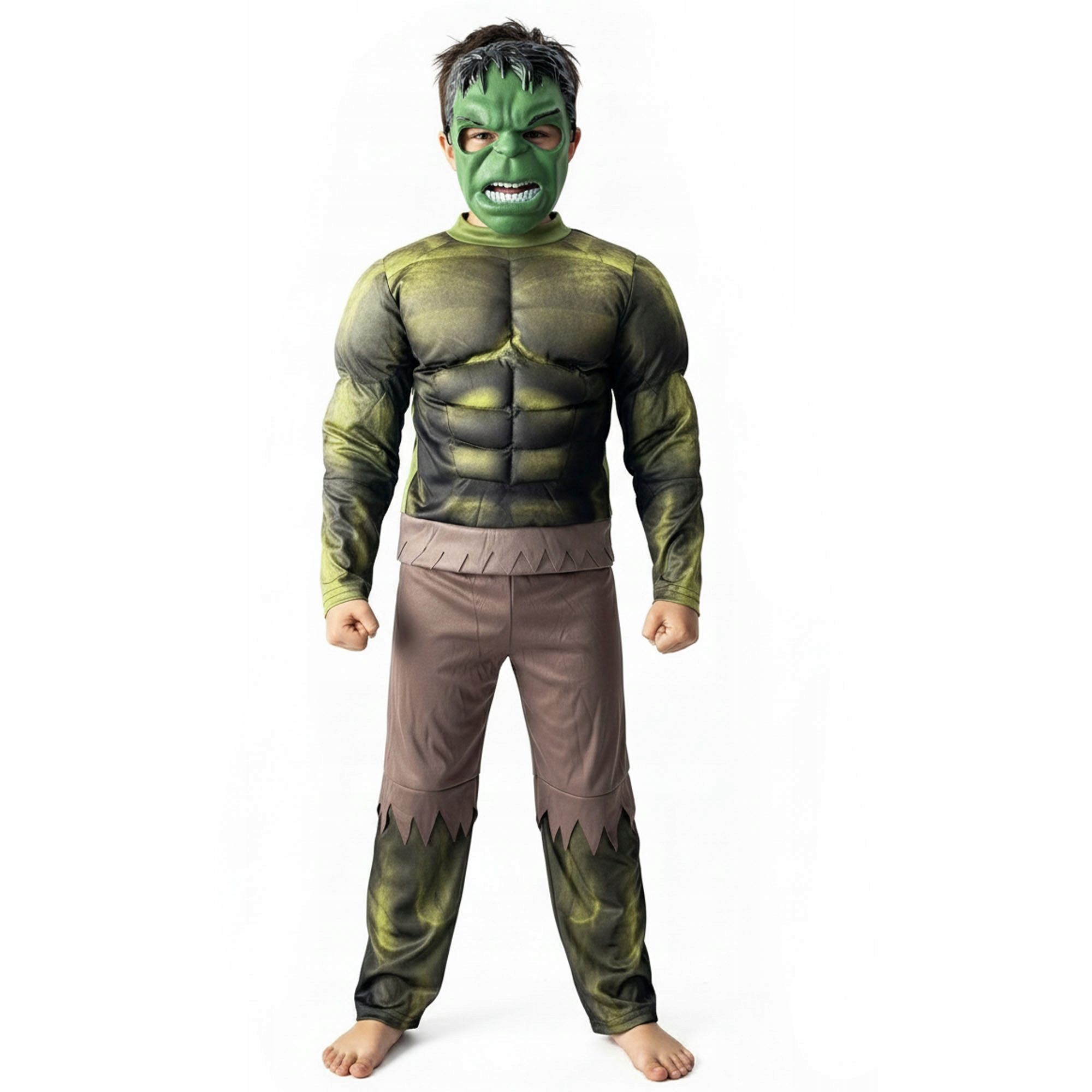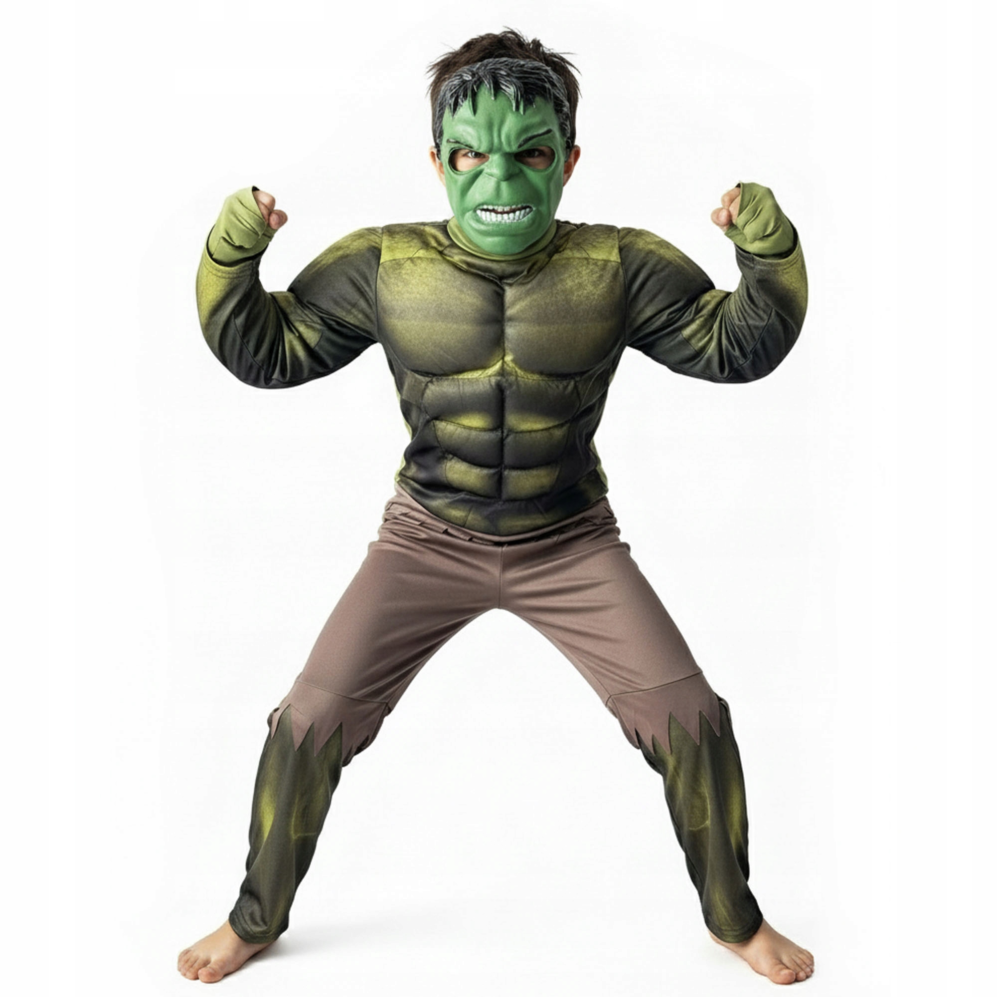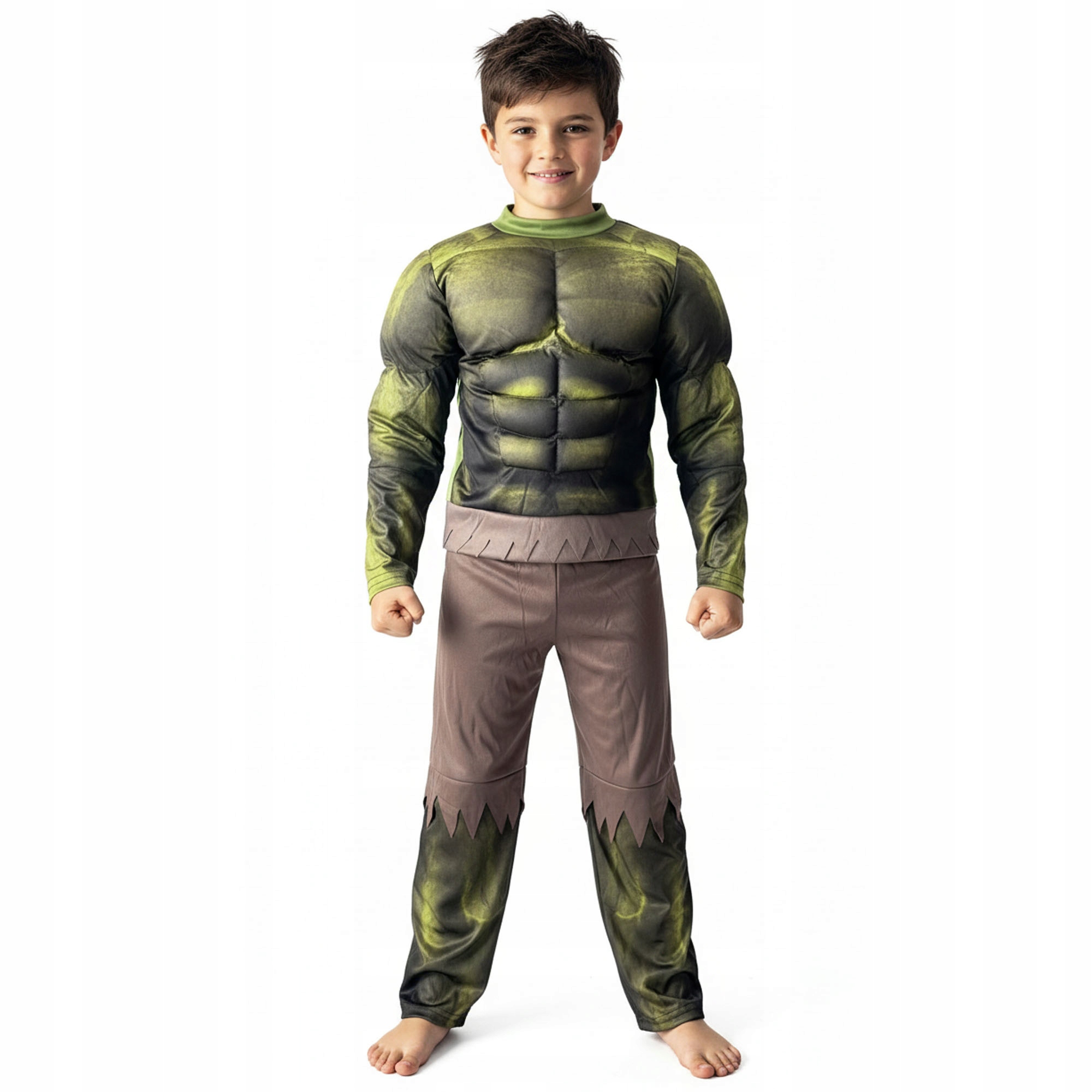 Górna część stroju posiada wypchane materiałem mięśnie, które nadają realistyczny wygląd i sprawiają, że dziecko wygląda jak prawdziwy Hulk – silny, odważny i gotowy do akcji!